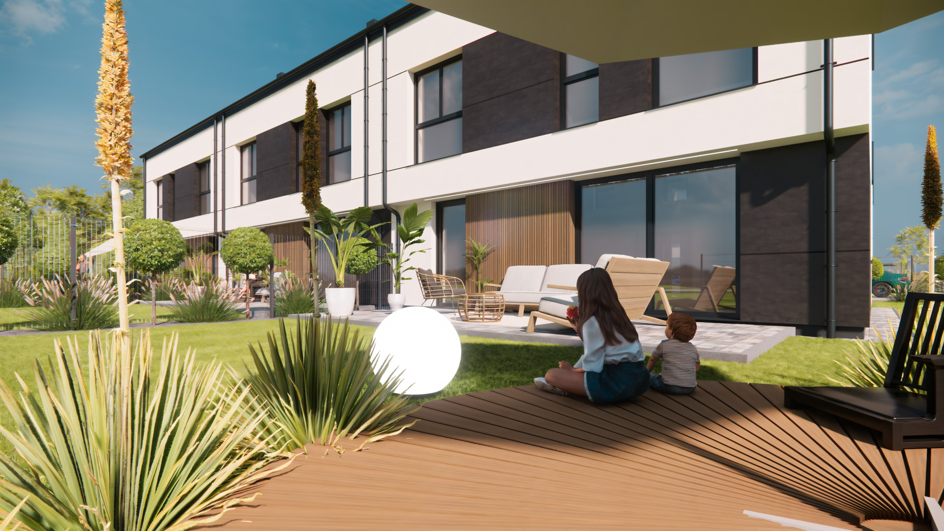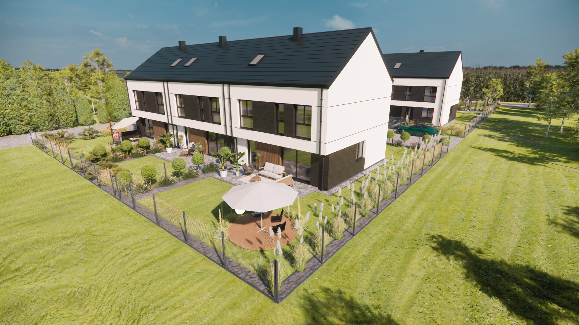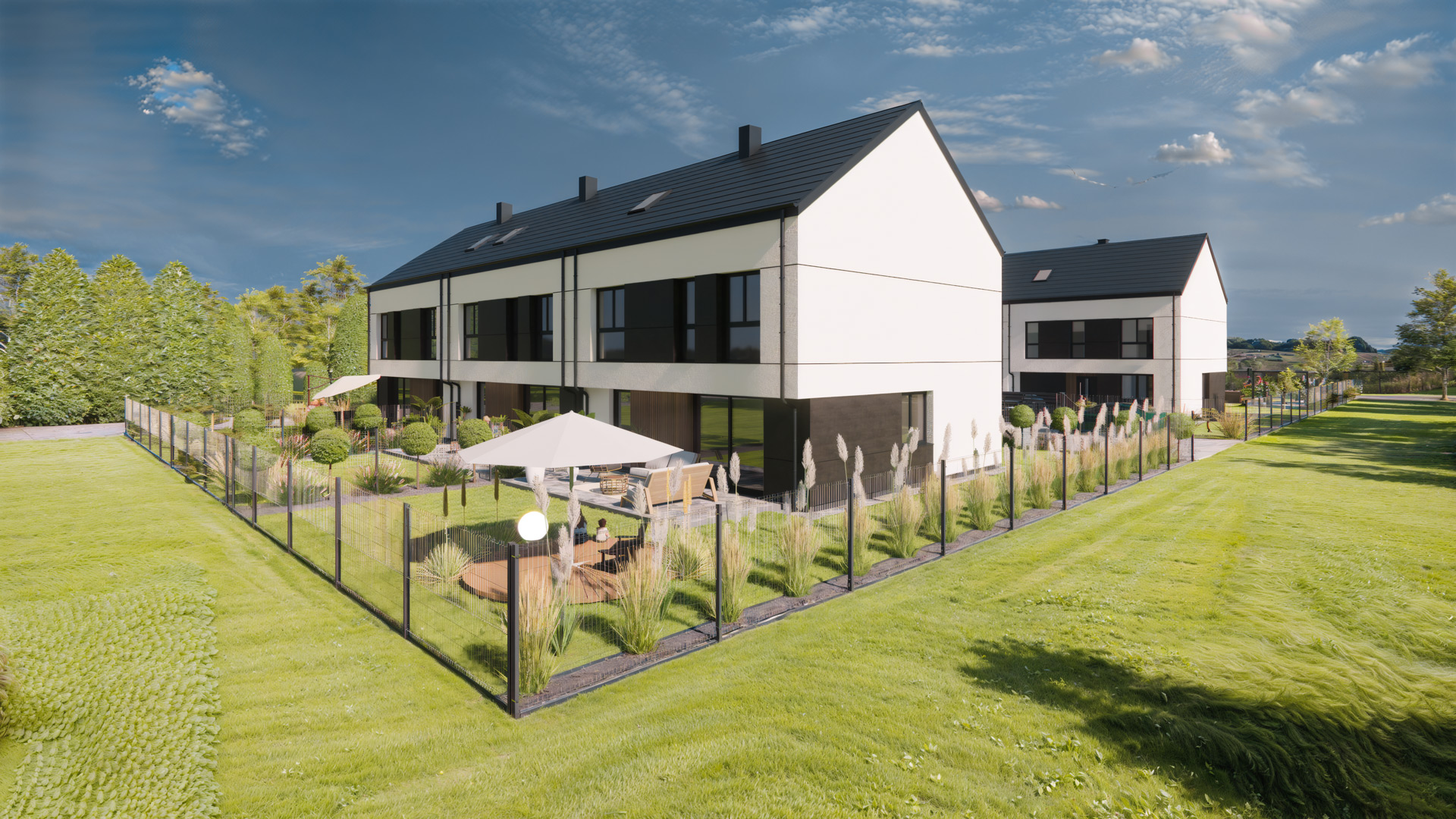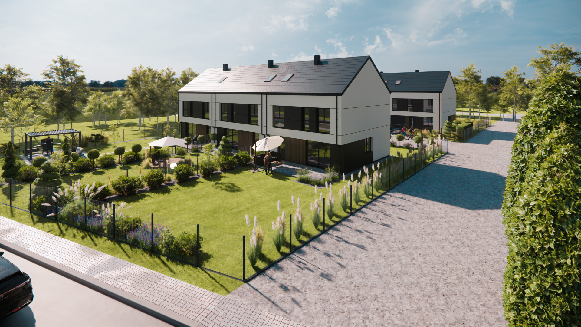 Energooszczędność: Każdy dom wyposażony jest w pompę ciepła i ogrzewanie podłogowe, co gwarantuje niskie koszty utrzymania.